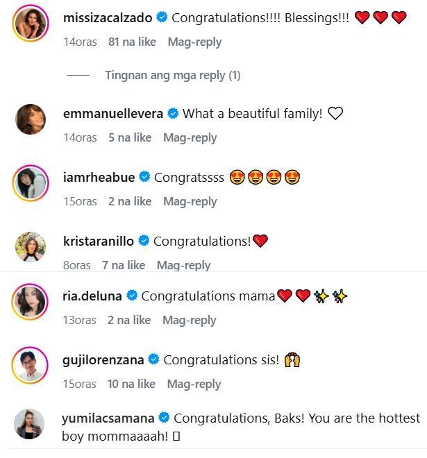Several showbiz friends of Roxanne greeted her and her husband for their new bundle of joy, including Iza Calzado and singer-songwriter Yumi Lacsamana.